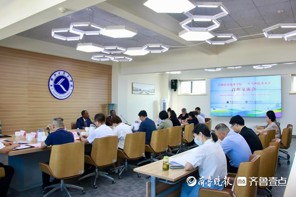 9月9日下午,日照职业技术学院与加纳库马西技术大学合作交流会举行。库马西技术大学校长加布里埃尔.德沃莫,国际事务联络处处长萨法.门萨,日照职业技术学院党委书记肖梅,党委委员、副院长徐锡权出席会议,国际教育系、海洋技术系等12个系部相关负责同志参加会议。